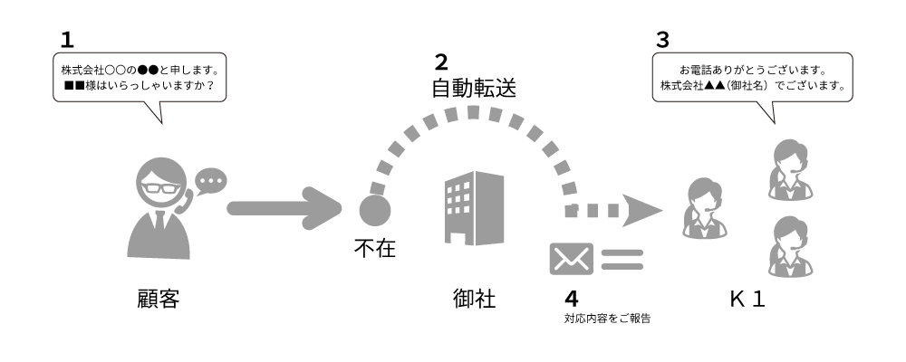 具体的には貴社にかかってきたお客様からの電話を貴社に代わって受付するサービスです。